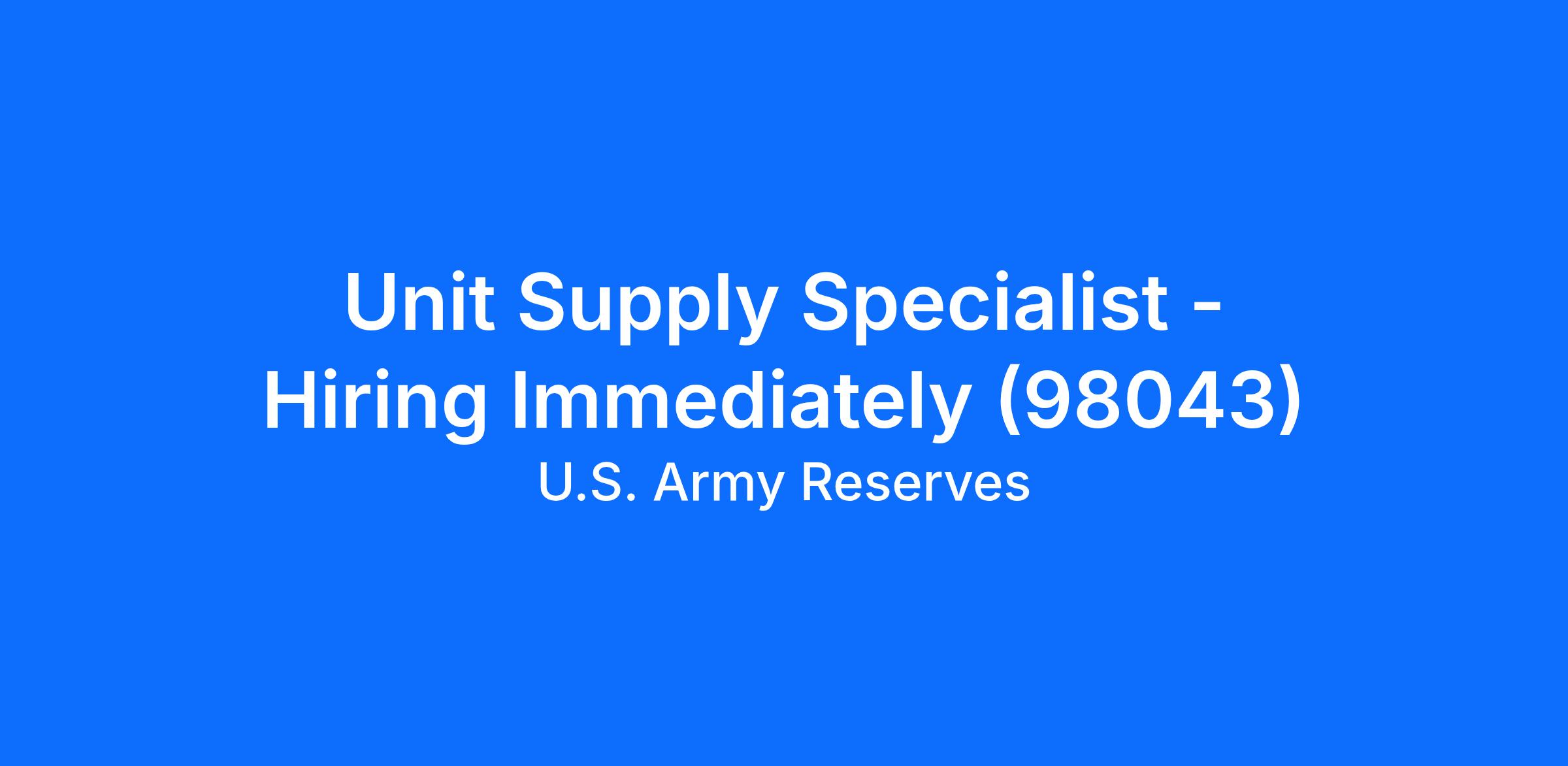 Unit Supply Specialist - Hiring Immediately (98043)