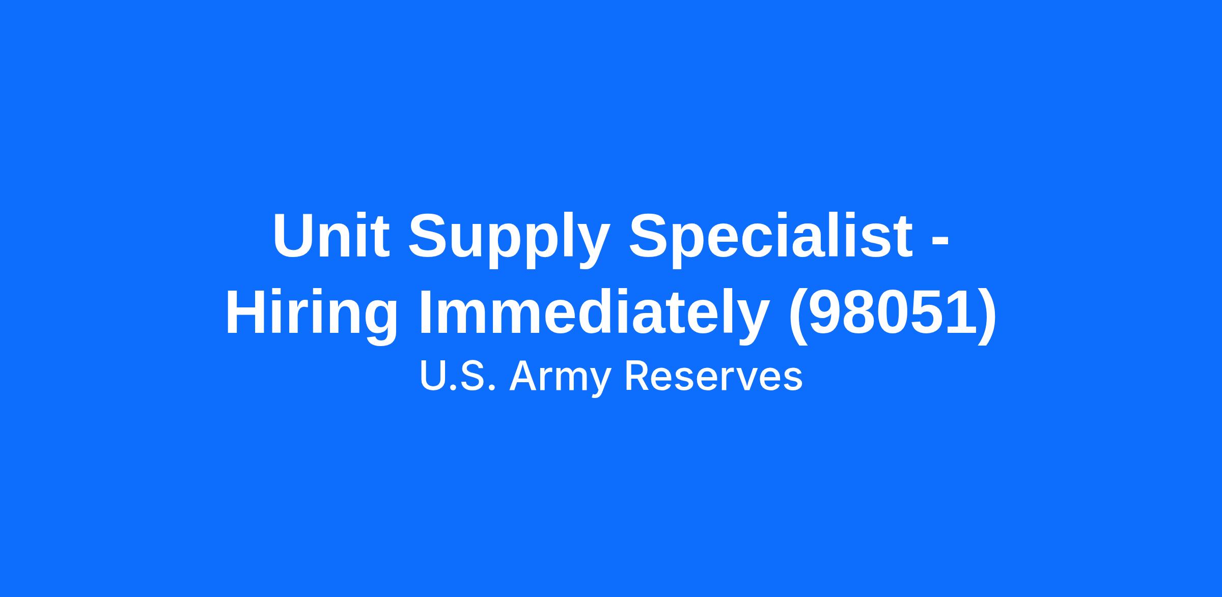 Unit Supply Specialist - Hiring Immediately (98051)