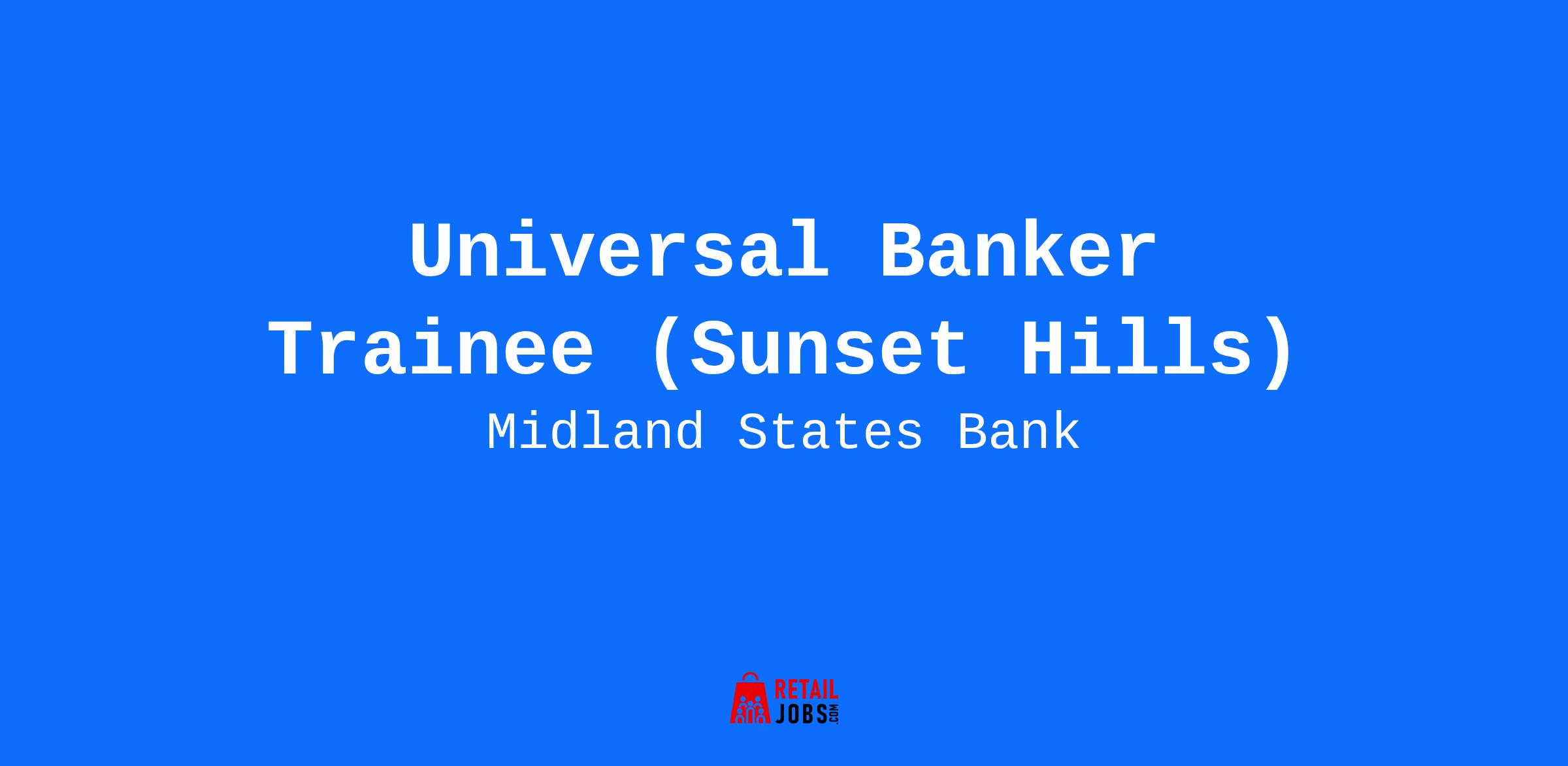 Position Title: Universal Banker Trainee Locations: Sunset Hills_MO Time Type: Full time Req ID: JR1162-Sunset Hills_MO At Midland, were proud to be a little different. You can see it in our bright orange signs-but theres more to it than that. With our heartfelt and personalized approach, were focused on meeting every customers needs with the brightest solutions. For more than 140 years, weve learned by serving customers skillfully with dedication and follow-through, we can brighten every interaction to drive our collective success. And this goes beyond traditional banking. We foster programs that empower our communities, continuously invest in our employees, and actively pursue brighter futures for all. Our humble ambition keeps us growing, giving back, and looking ahead. Were innovating and optimizing our services to ensure we stay unique - providing strength you can count on with heart you can feel. You might say were unlike any other bank. And youd be right. At Midland States Bank, base salary is one component of our Total Rewards program. Exact compensation is determined by factors such as (but not limited to) education, skills, internal equity, and experience. This position offers additional compensation in the form of short-term incentives (i.e. bonus and/or commission) and may include long-term incentives (i.e. stock awards). Benefits for this role include comprehensive healthcare, well-being benefits, paid family leave as well as generous paid time off. Total Rewards also include banking perks, an Employee Stock Purchase Plan, 401K plan with company match and may include the opportunity to participate in our Non-Qualified Deferred Compensation plan. Incentives and benefits are subject to eligibility requirements. Universal Banker Trainee Position Summary The Universal Banker Trainee position is responsible for delivering excellent customer experiences to current and potential customers. Employees in this position will display effective communication skills and exhibit a good knowledge of the products and services offered. Also responsible for offering referral opportunities that will result in outcomes that define excellent customer service. An employee will remain in a trainee position until they have proven their ability to effectively place customers in the correct mix of product and services through needs based questioning. They must be able to regularly meet and/or exceed performance and production goals established by the Banking Center Manager. Primary Accountabilities Institutional knowledge of banking. Receive cash and checks for deposit, verifying amounts, looking at endorsements and reviewing checks for possible fraud including holds. Examines cash carefully to guard against counterfeit bills. Cashes checks for customers in accordance with bank policy. Enters transactions into computer system and issues receipts. Provides accurate customer service to include balancing cash drawer throughout the day to reduce and eliminate teller differences. Understanding basic knowledge of deposit and lending products & services. Able to identify correct product types through needs-based questioning allowing them to build and deepen customer relationships to include determining needs and referring business partners. Assists with basic deposit account openings and maintenance requests with monitoring and coaching provided by a senior level employee. Develop sales and product knowledge allowing them to achieve personal and team goals as set. Track and monitor those sales and opportunities in the customer information software. Participate in onsite visits to customers to promote the Employee Perks at Work Program & Merchant Services. Proactively participates in outbound teleconsulting to promote and expand current client relationships. Actively participate in weekly huddles and one on one coaching sessions. Serves as relief and /or backup teller in other locations of Midland States Bank. Timely completion of all assigned learning activities. Demonstrates and models Midland States Bank core values that support the banks culture. Participate in bank sponsored community activities and initiatives. The role requires occasional travel for training and team meetings, and willingness to travel periodically, to locations within market as needed. May require work in a Midland office to ensure collaboration and support of internal and external customers. Maintain compliance with all applicable regulations including, but not limited to, the Bank Secrecy Act (BSA). Other duties as assigned. Position Qualifications Education/Experience: Sales and customer service background. Ability to: Stand for extended periods of time. Ability to lift and transport coin and currency bags as required (bags may weigh between 25lbs and 50lbs). Other Desired Qualifications: Multilingual speakers are encouraged to apply. Competencies: Business insight Cultivates innovation Drives results Makes sound decisions Being a brand champion Collaborates Communicates effectively Customer focus Being Authentic Emotional Intelligence Self development Being flexible and adaptable If you require reasonable accommodation in completing this application, interviewing, completing any pre-employment testing, or otherwise participating in the employee selection process, please direct your inquiries to Midland States Bank Human Resources at HR@midlandsb.com . THIS JOB DESCRIPTION DOES NOT CONSTITUTE A CONTRACT FOR EMPLOYMENT At Midland States Bank, we believe that when we can bring our whole selves to work each day, we become happier, more comfortable, more confident and more excited to do great things for our customers, each other and our company. Were proud to be an Equal Opportunity and Affirmative Action employer. At Midland, we recruit, employ, train, compensate and promote without regard to race, color, religion, gender, gender identity or expression, sexual orientation, national origin, genetics, disability, age, or veteran status.