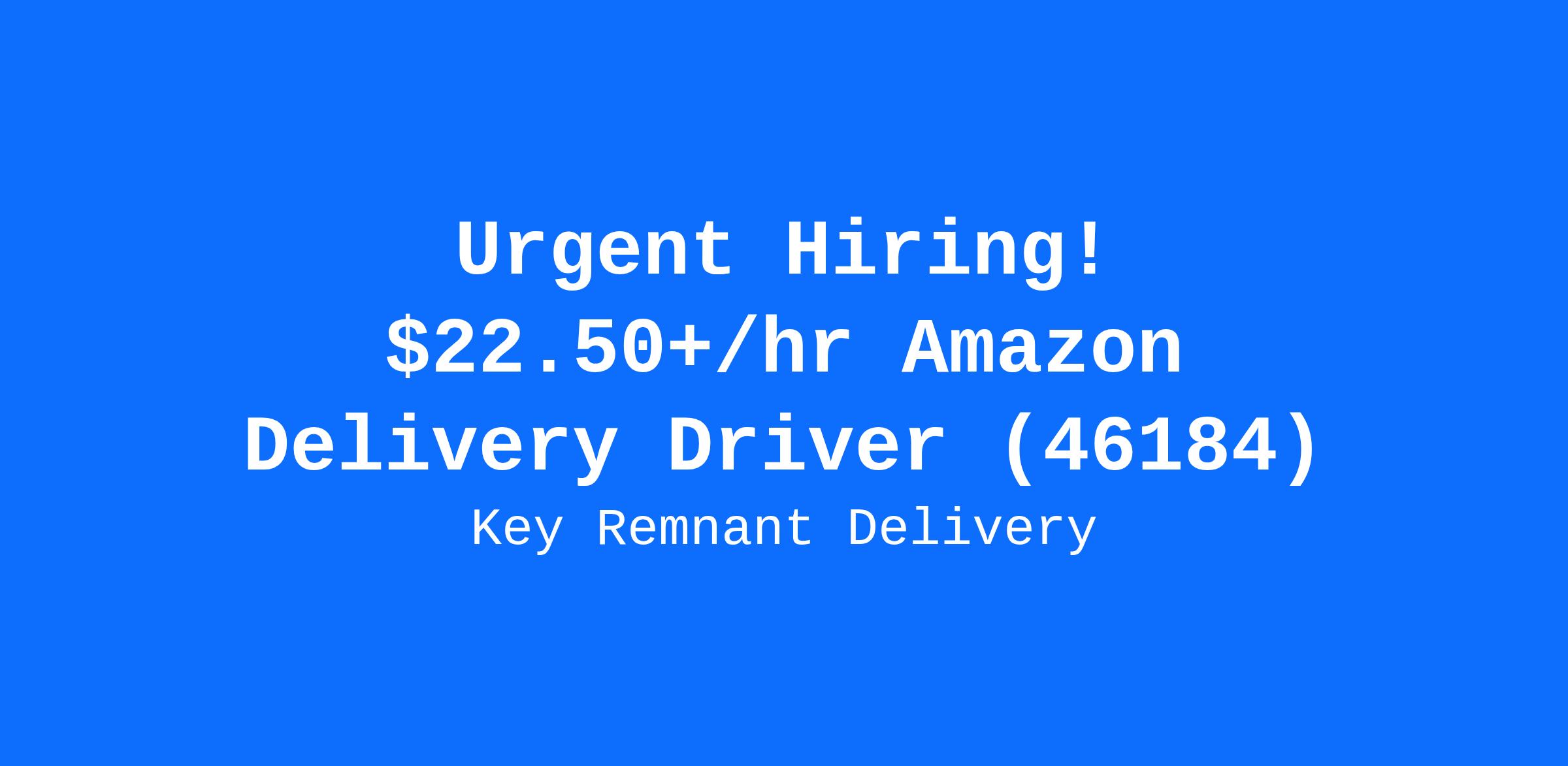 Urgent Hiring! $22.50+/hr Amazon Delivery Driver (46184)