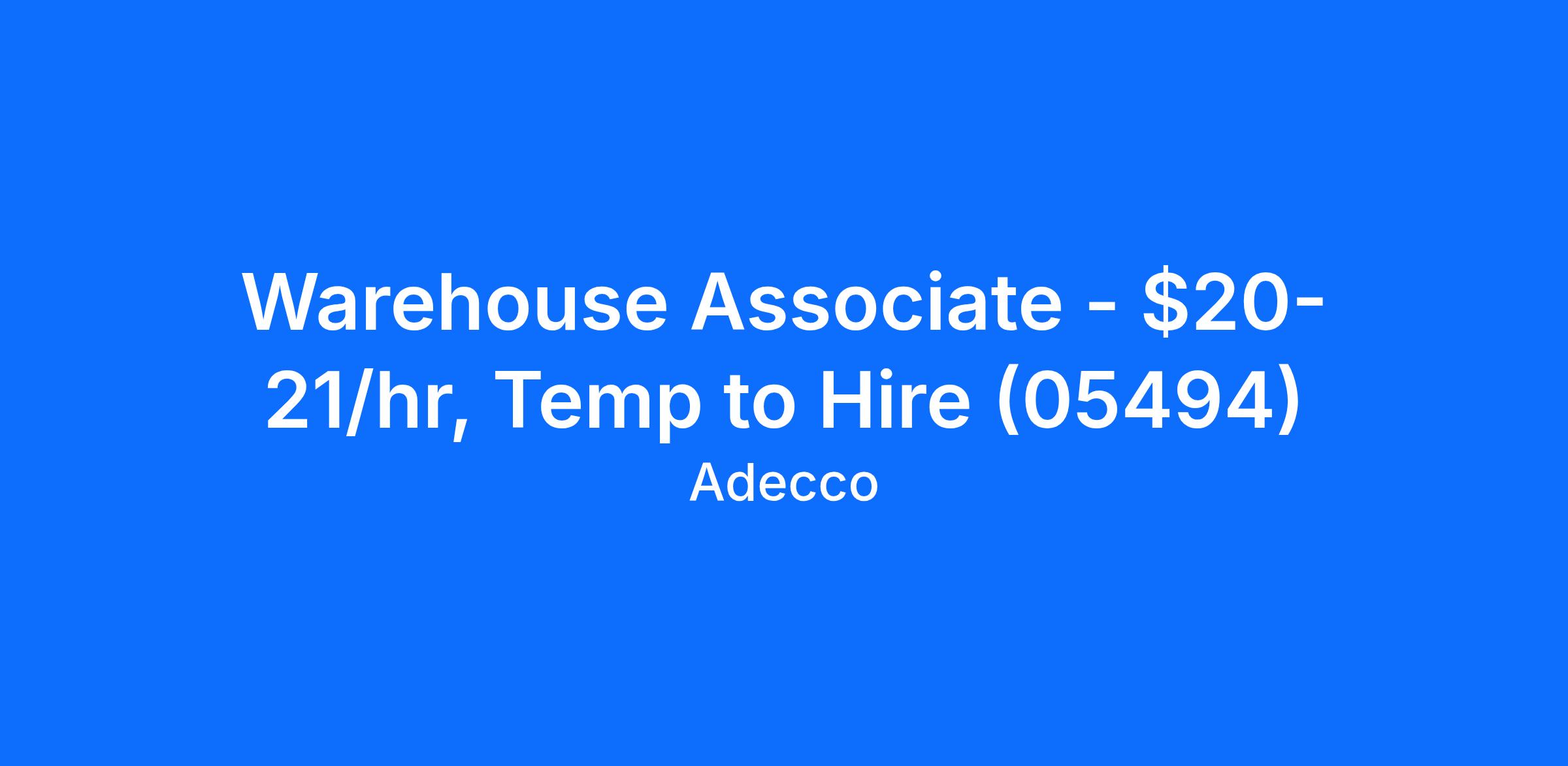 Warehouse Associate - $20-21/hr, Temp to Hire (05494)