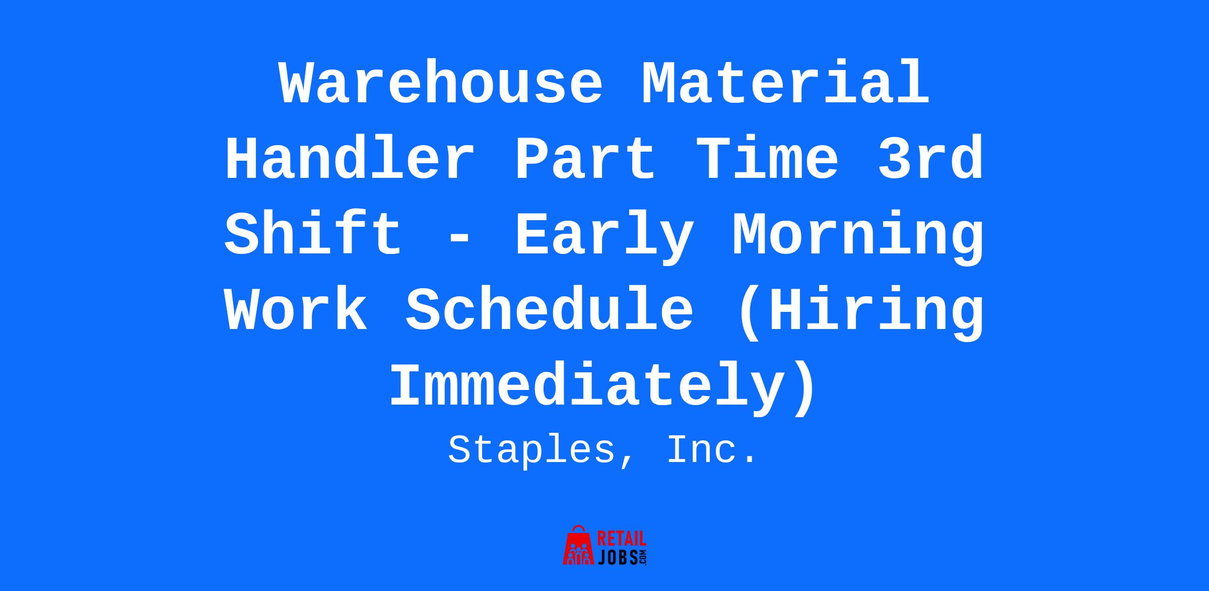 Warehouse Material Handler Part Time 3rd Shift - Early Morning Work Schedule (Hiring Immediately)