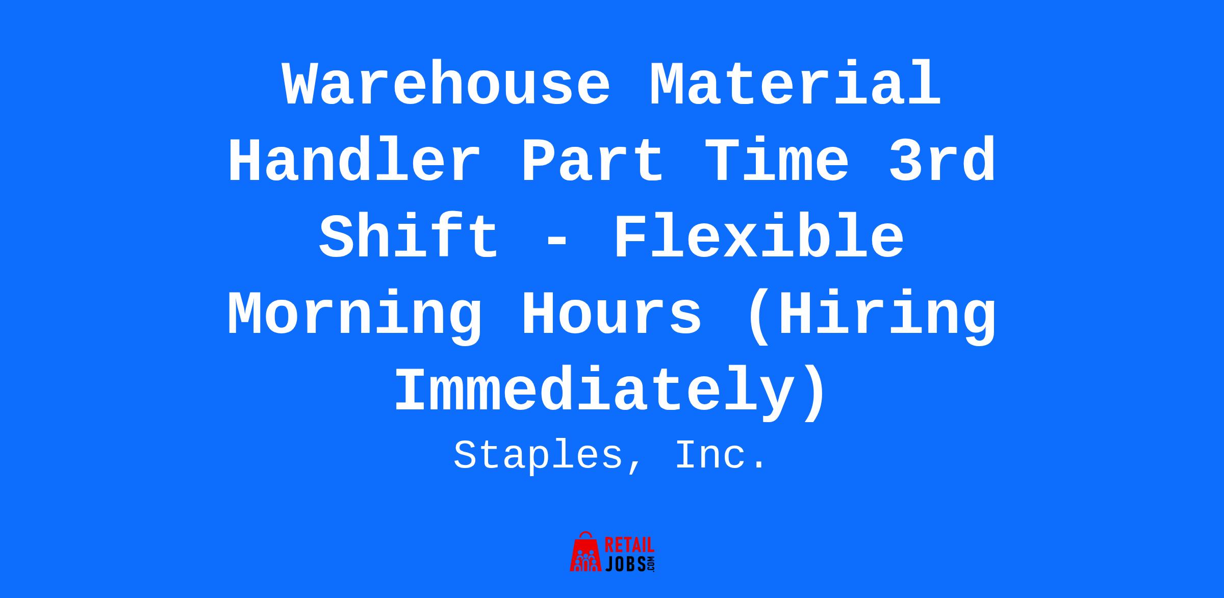 Warehouse Material Handler Part Time 3rd Shift - Flexible Morning Hours (Hiring Immediately)
