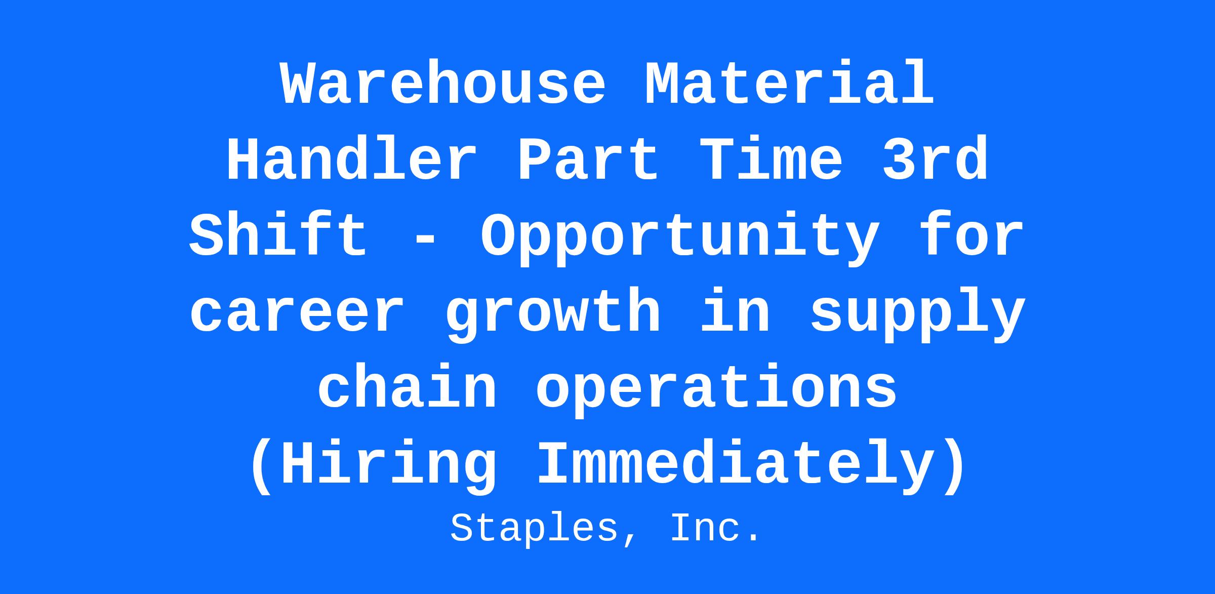 Warehouse Material Handler Part Time 3rd Shift - Opportunity for career growth in supply chain operations (Hiring Immediately)