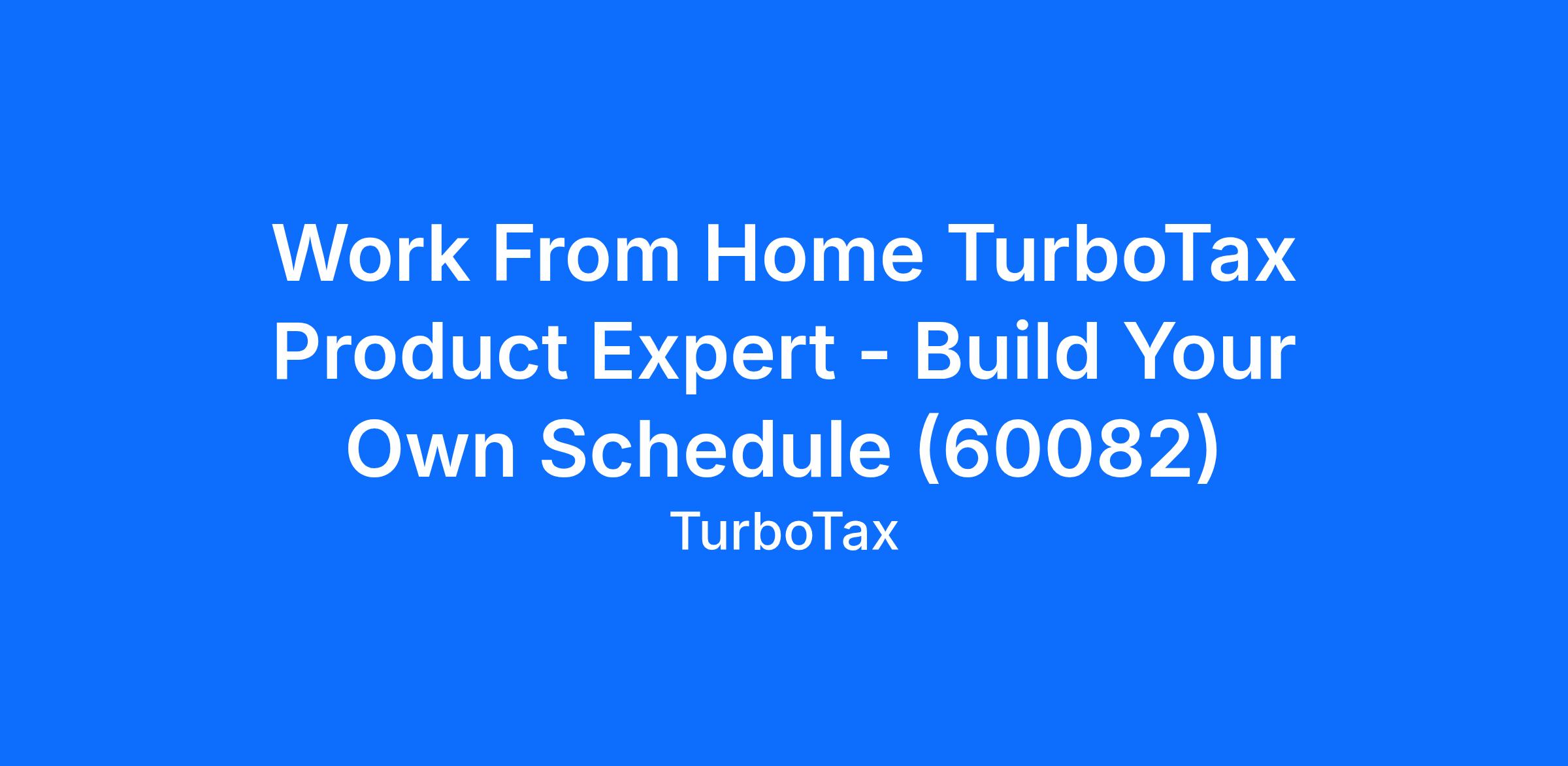 Work From Home TurboTax Product Expert - Build Your Own Schedule (60082)