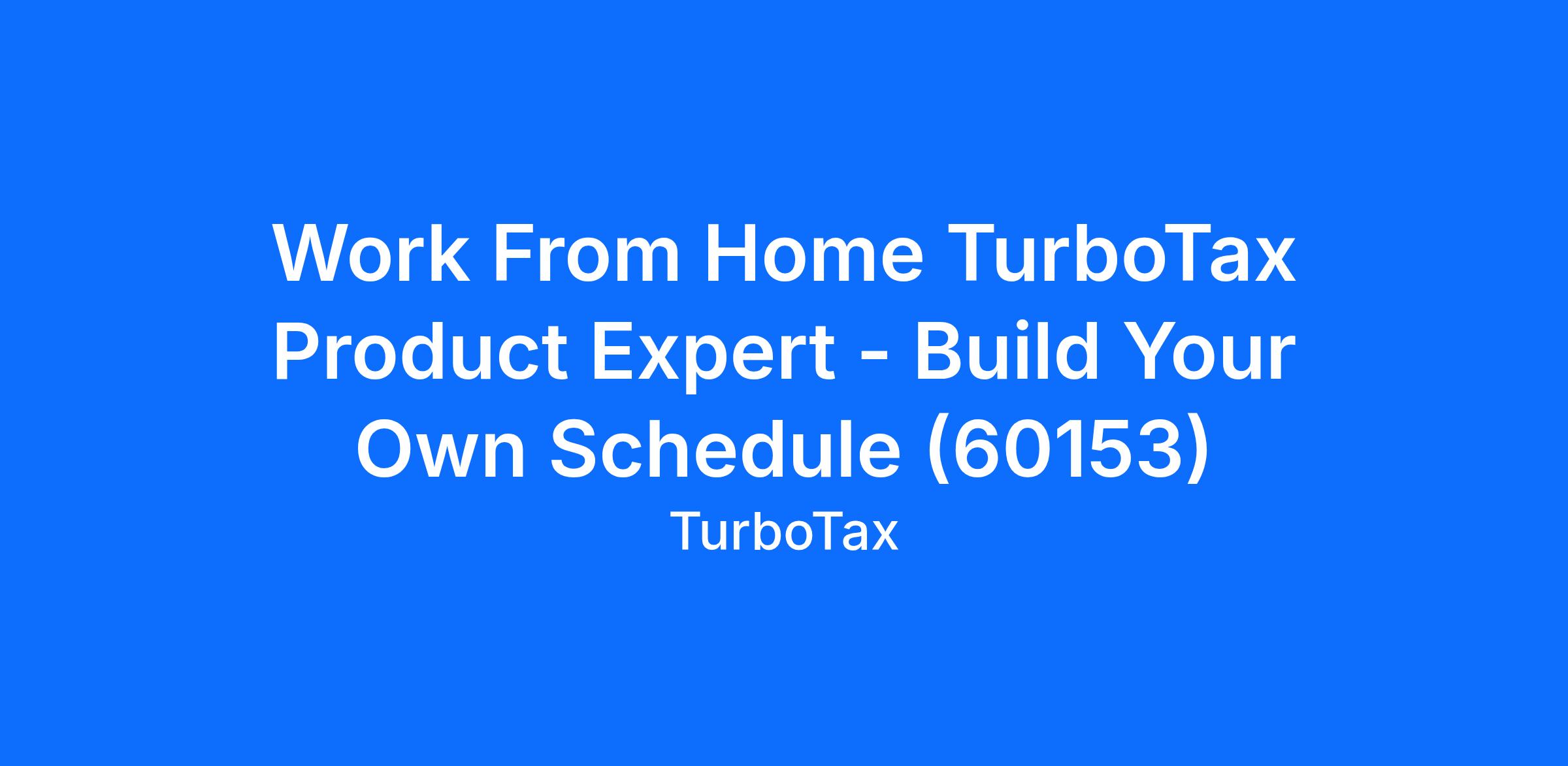 Work From Home TurboTax Product Expert - Build Your Own Schedule (60153)