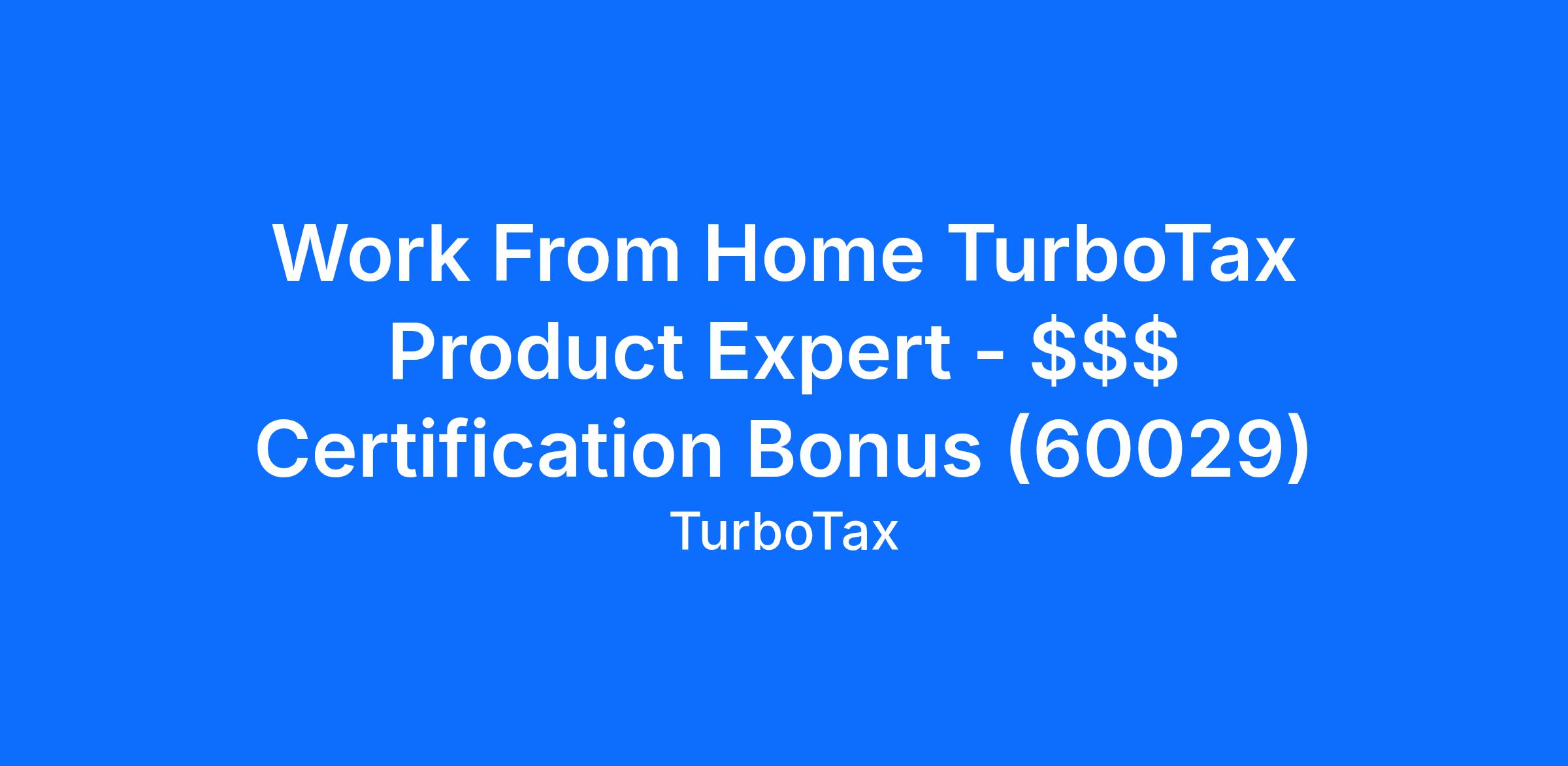 Work From Home TurboTax Product Expert - $$$ Certification Bonus (60029)