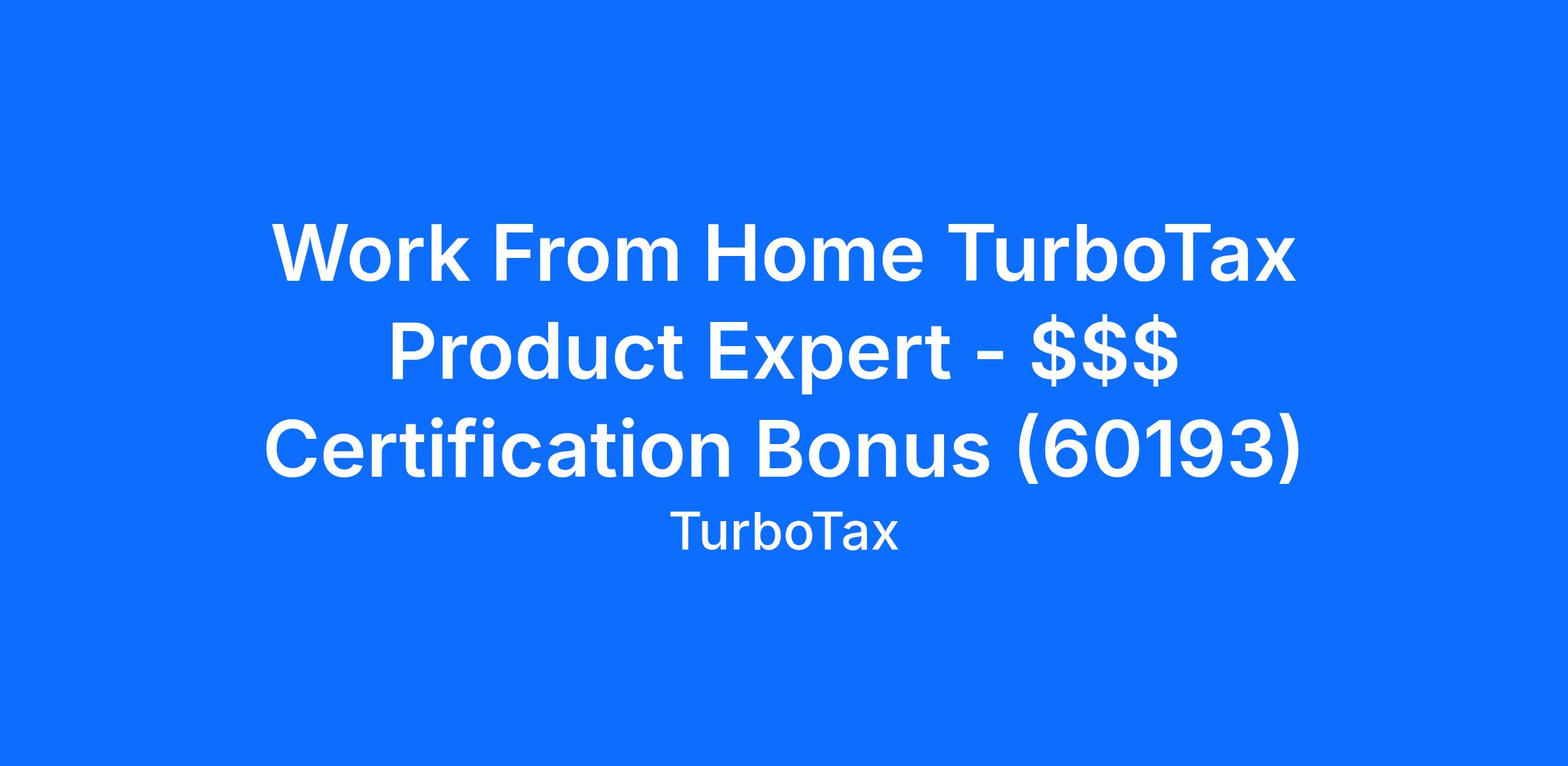 Work From Home TurboTax Product Expert - $$$ Certification Bonus (60193)