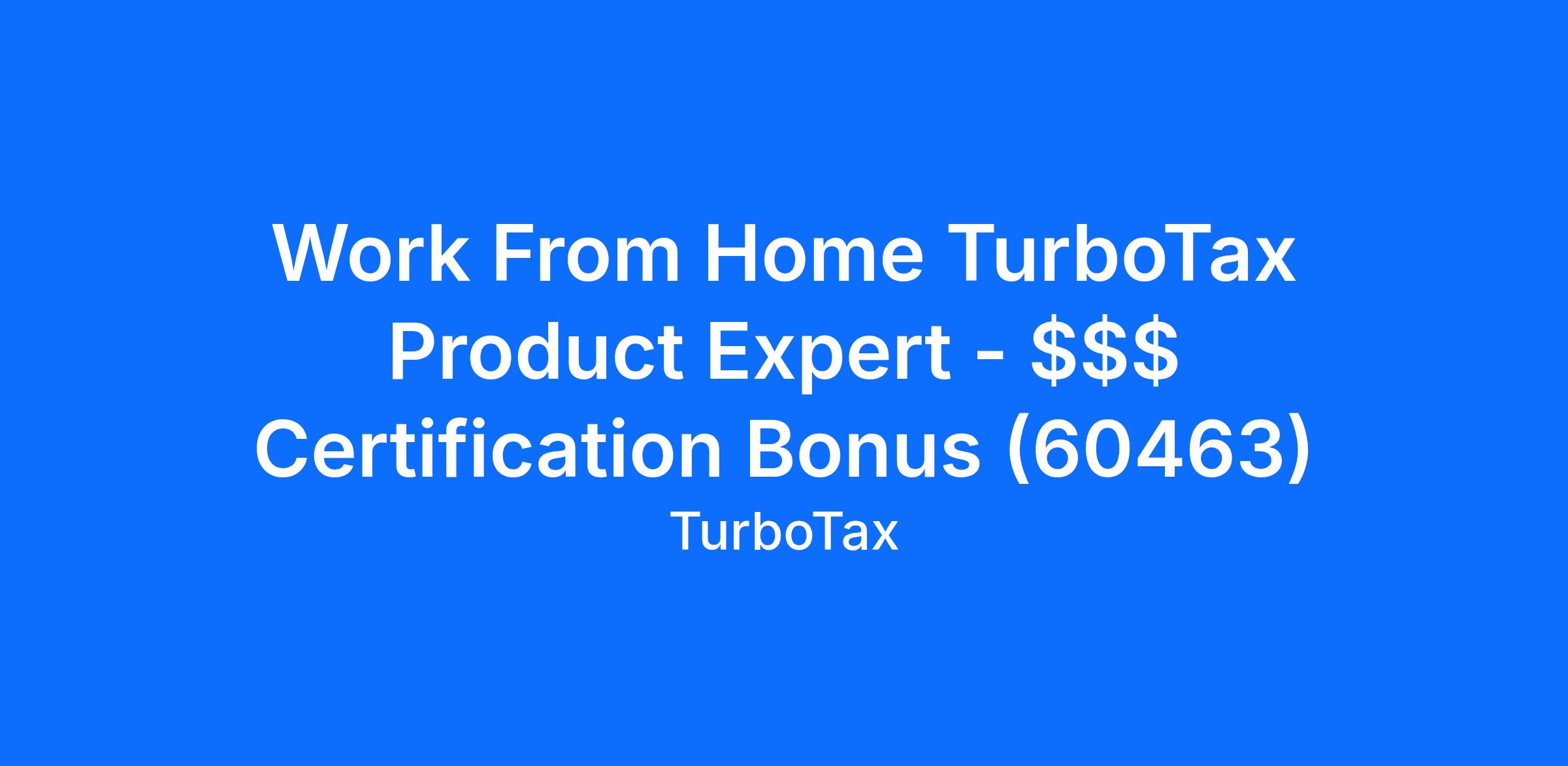 Work From Home TurboTax Product Expert - $$$ Certification Bonus (60463)