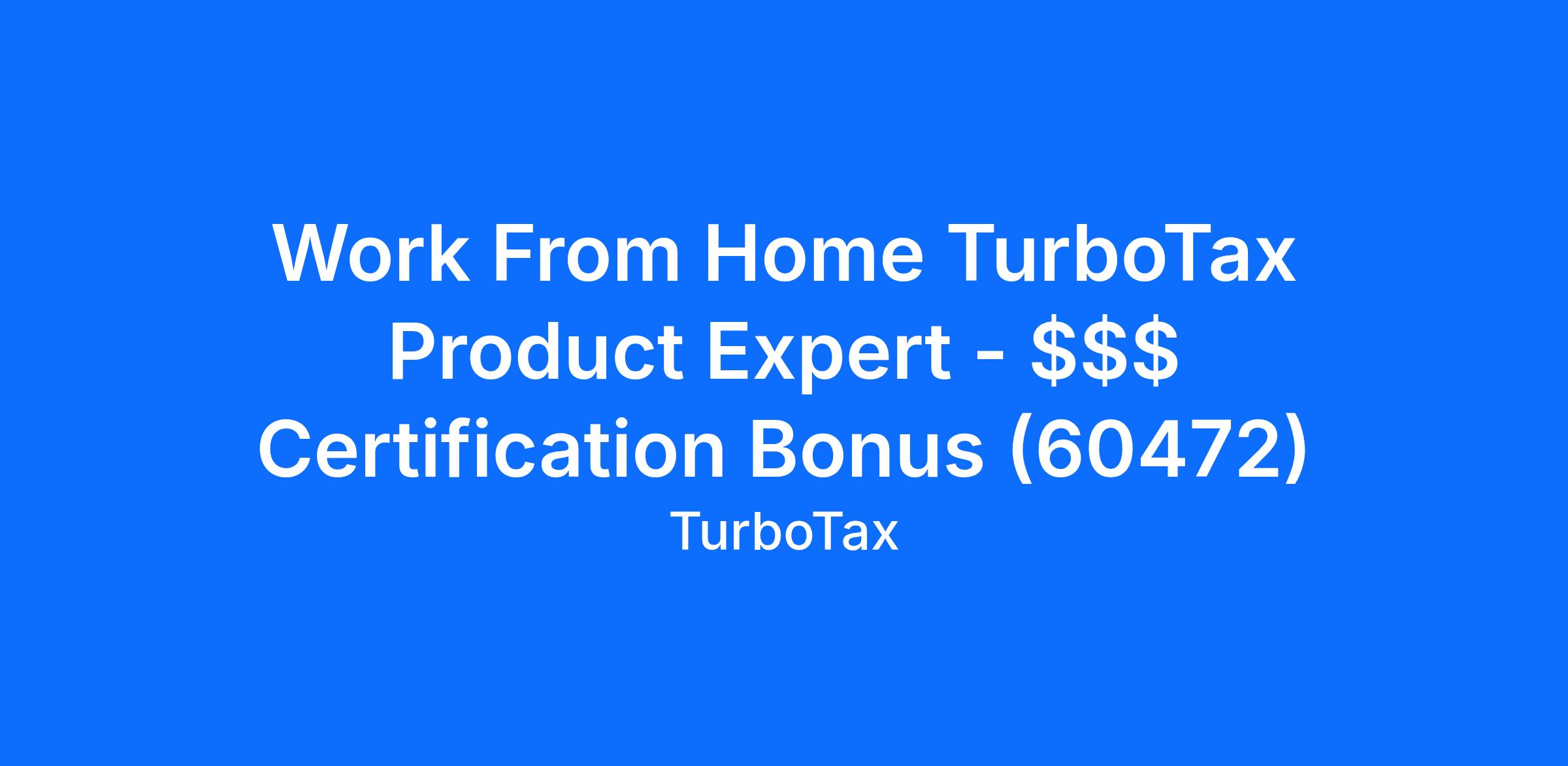 Work From Home TurboTax Product Expert - $$$ Certification Bonus (60472)