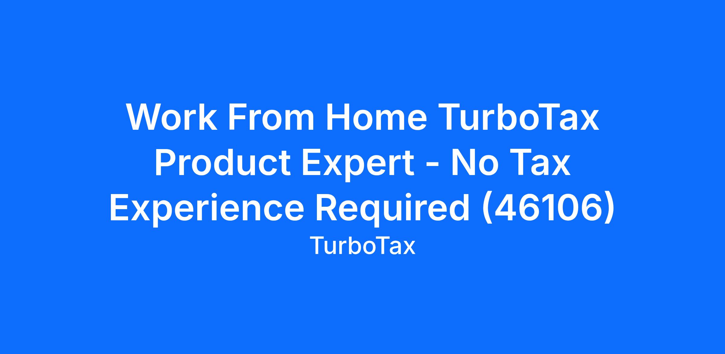 Work From Home TurboTax Product Expert - No Tax Experience Required (46106)