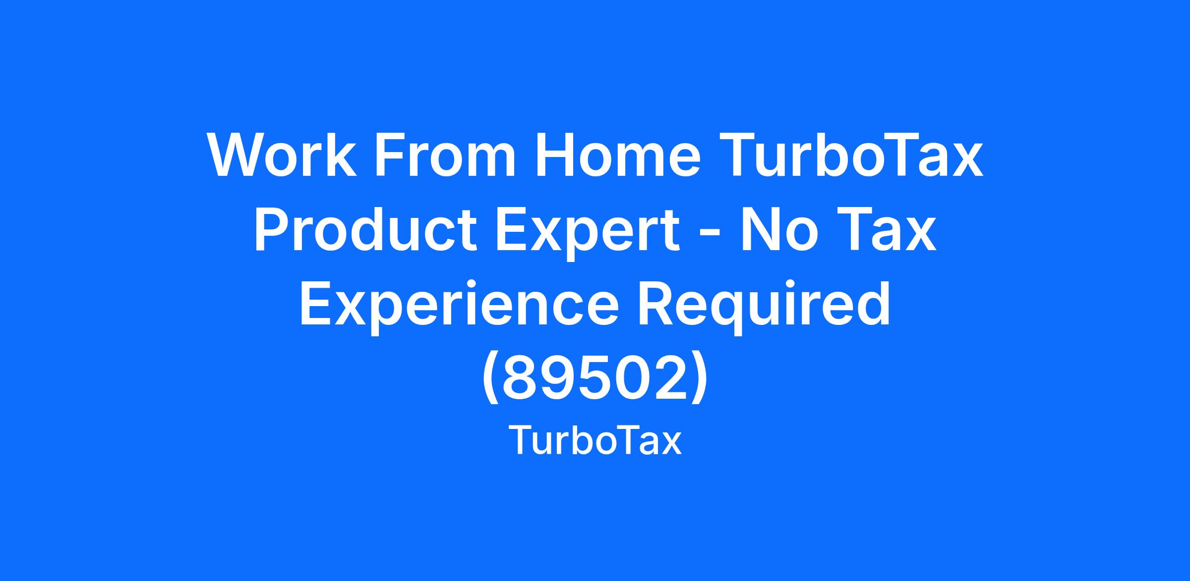 Work From Home TurboTax Product Expert - No Tax Experience Required (89502)